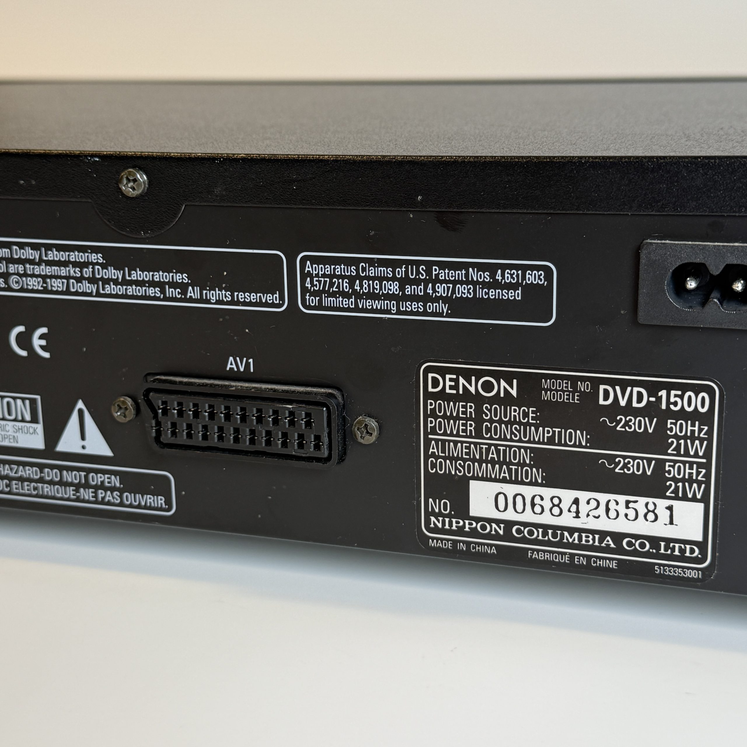 De Denon DVD-1500 is een prachtige vertegenwoordiger uit een tijdperk waarin hifi-apparatuur nog Echt robuust gebouwd werd. Deze speler voelt zwaar, degelijk en bijna audiofiel aan. Precies wat Denon in de jaren ’90 zo’n sterke reputatie gaf. De voorkant is voorzien van een helder display en een rustige, overzichtelijke knoppenlayout, terwijl de achterkant een indrukwekkend scala aan aansluitingen biedt: van component video tot S-video, coaxiaal en optisch digitaal. Dat maakt hem ideaal voor zowel klassieke home cinema-setups als moderne verzamelaars die hun retro-collectie willen uitbreiden.