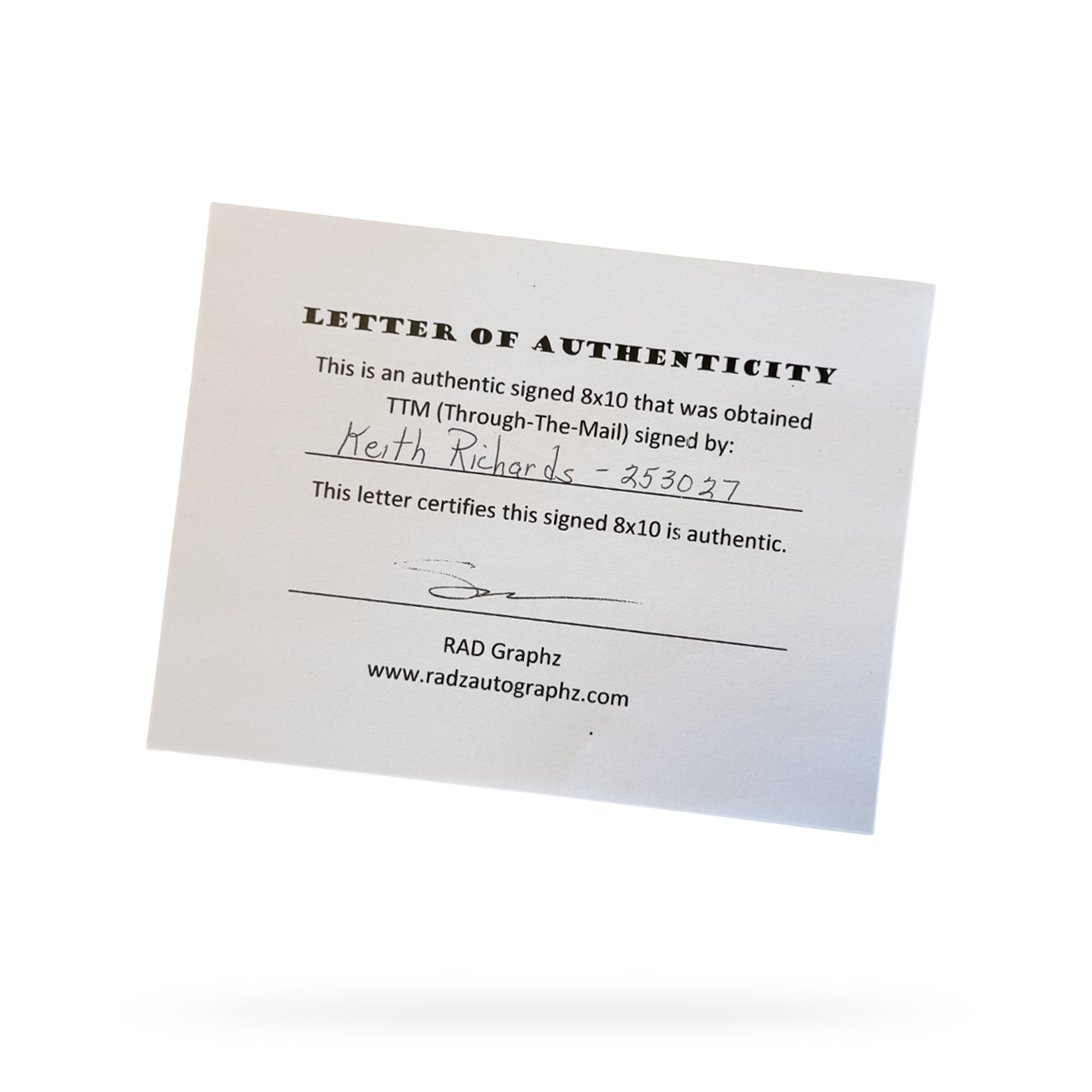 FOTO (KEITH RICHARDS) GESIGNEERD MET COA