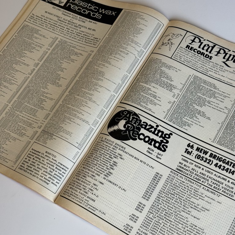 Het magazine bevat daarnaast prijslijsten, discografieën, advertenties van legendarische platenzaken én een prachtige zwart-wit backcover met Debbie Harry. Perfect voor verzamelaars die houden van de gouden tijd van fysieke muziekbladen en vinyl. Een sterk nummer met iconische artiesten, en daardoor extra gewild onder internationale verzamelaars.